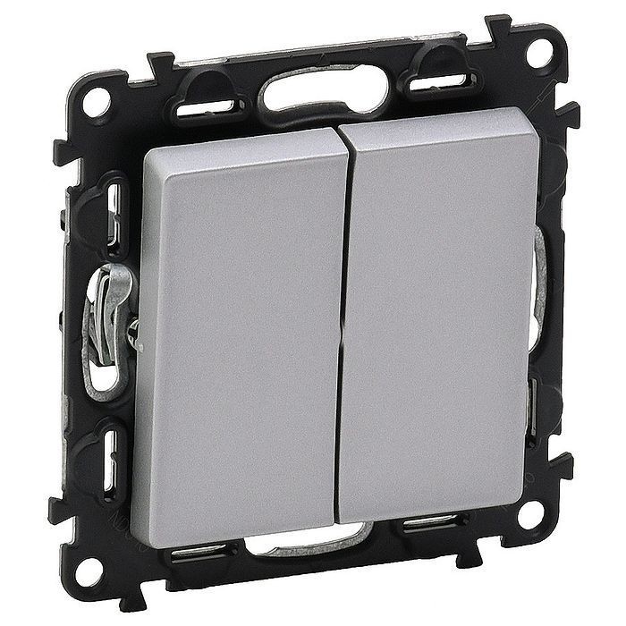Переключатель 2-клавишный Legrand VALENA LIFE, скрытый монтаж, алюминий, 752608